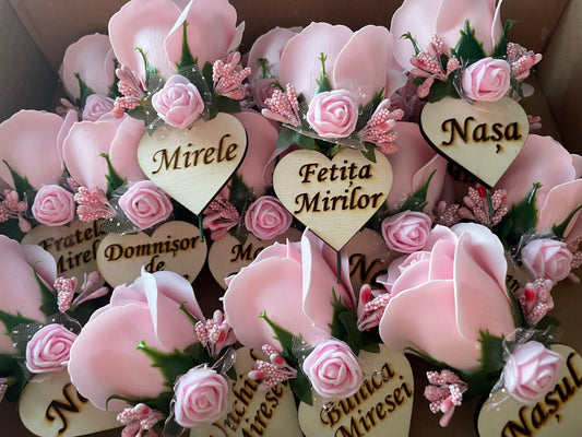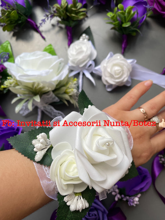 Floare de pus in piept mire, nas, brățară mireasă, nasa 01