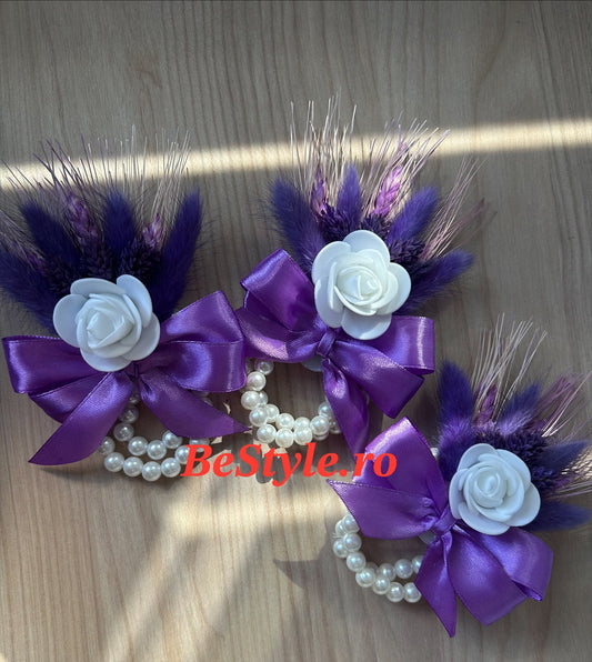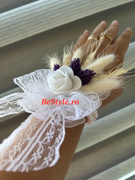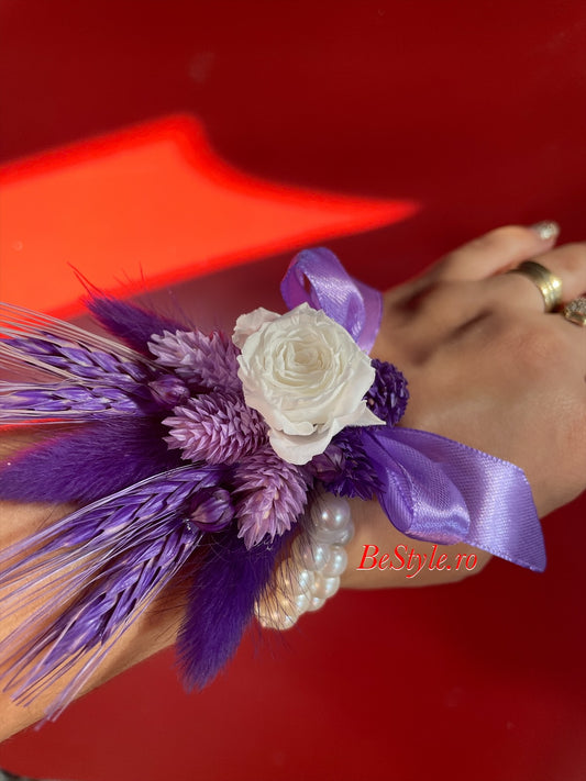Bratara din perle, cu flori stabilizate pentru mireasa, nasa, soacre, domnisoare 01
