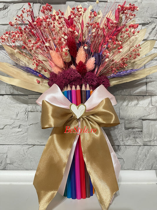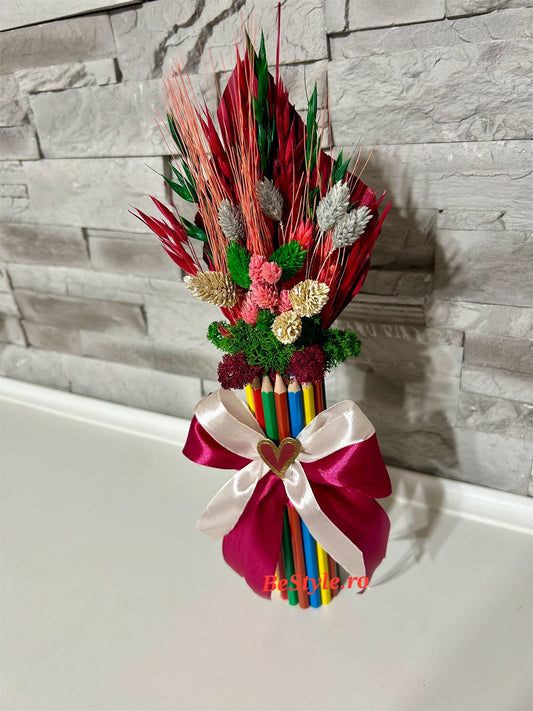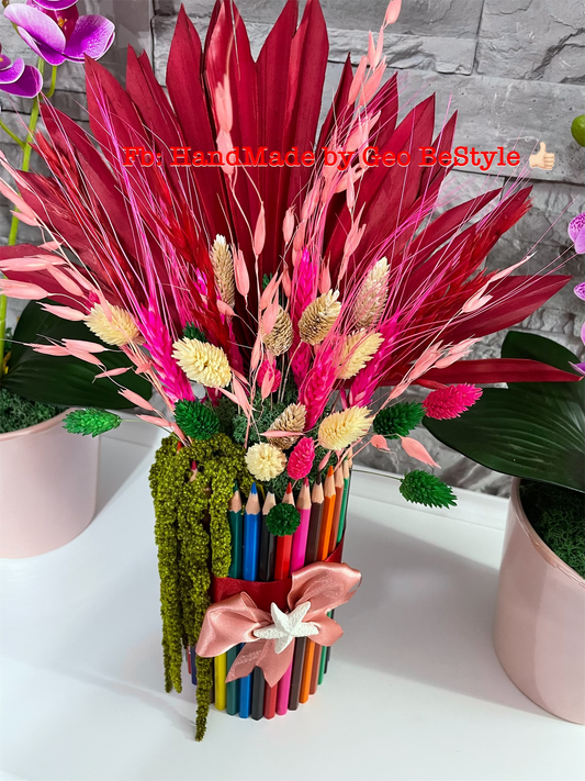 Aranjament din creioane colorate cu flori uscate 01