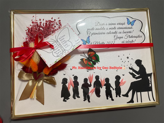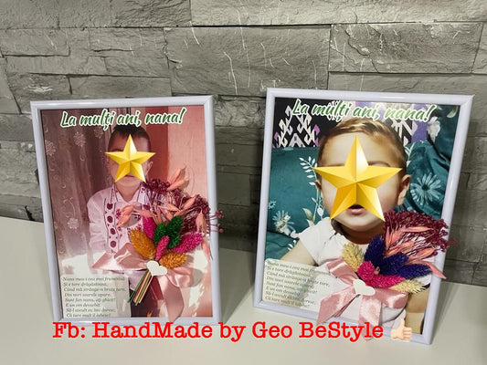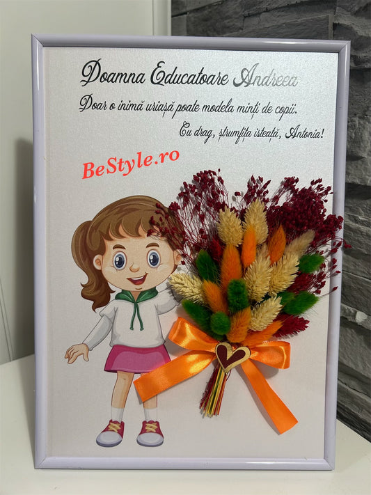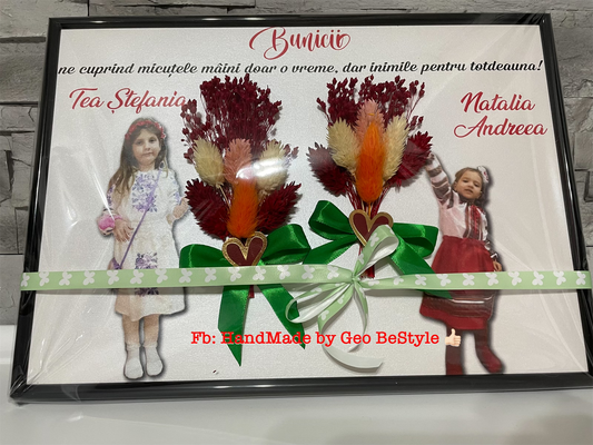 Tablou personalizat cu fotografie si buchet din flori uscate pentru bunici A4