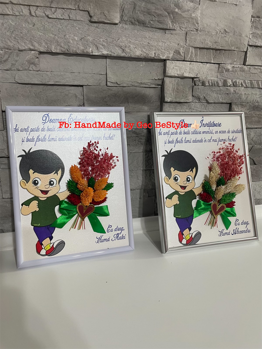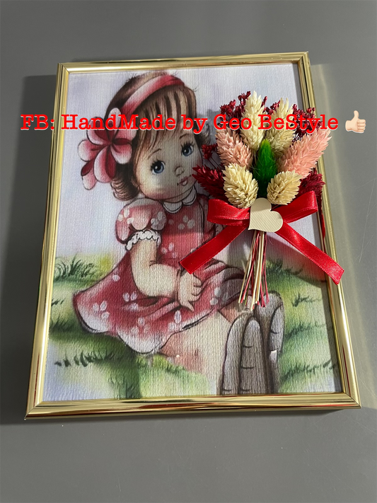Tablou botez pentru nana personalizat cu fotografie si buchet din flori uscate 15/20