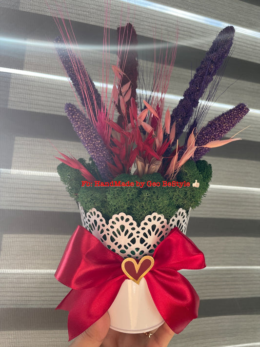 Aranjament cu licheni si flori uscate si stabilizate 01