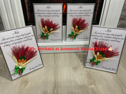 Tablou nunta pentru nasa cu buchet din flori uscate