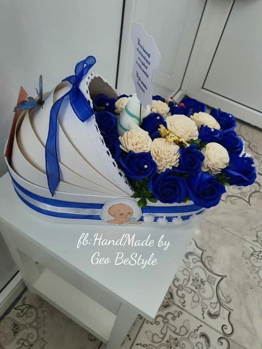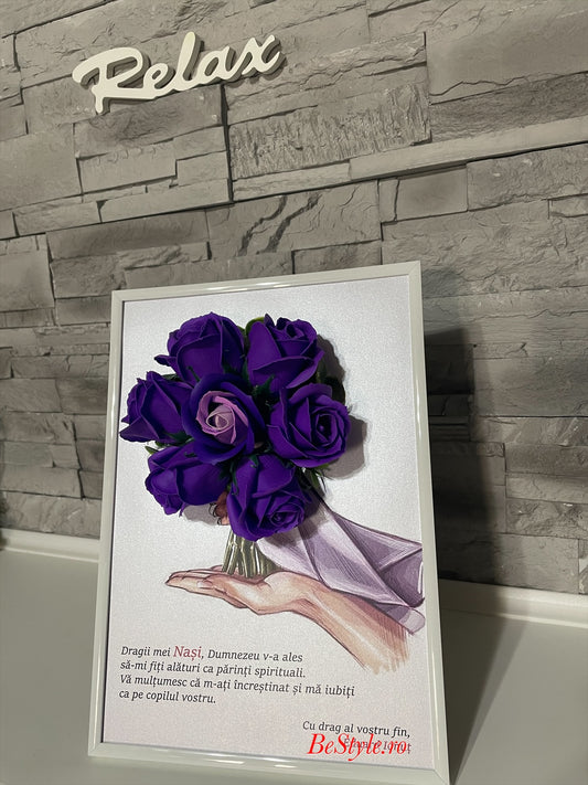 Tablou pentru nasii de botez cu buchet din trandafiri de sapun