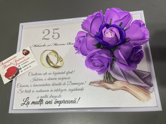 Tablou cadou nunta de argint cu trandafiri de sapun