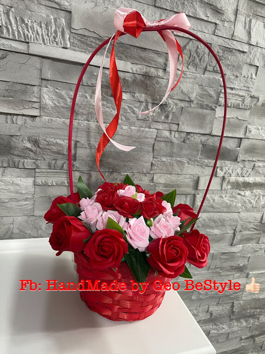 Cosulet din nuiele cu trandafiri de sapun si de spuma 01