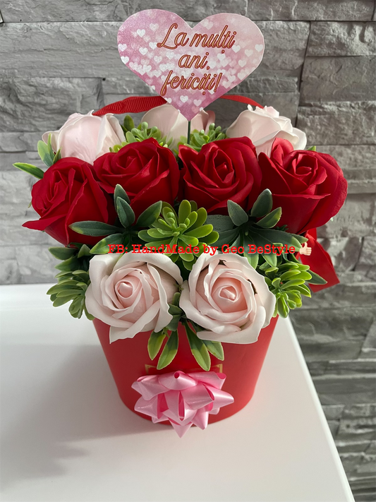 Aranjament cu trandafiri de sapun personalizat cu varsta din trandafiri 01