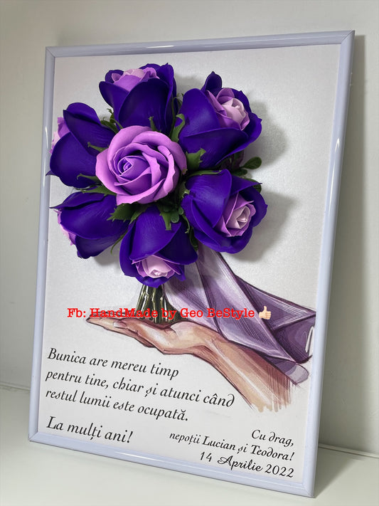 Tablou personalizat A4 cu buchet din trandafiri de sapun 01