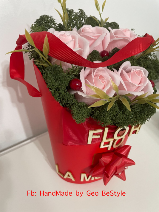 Cosulet personalizat cu trandafiri de sapun si licheni