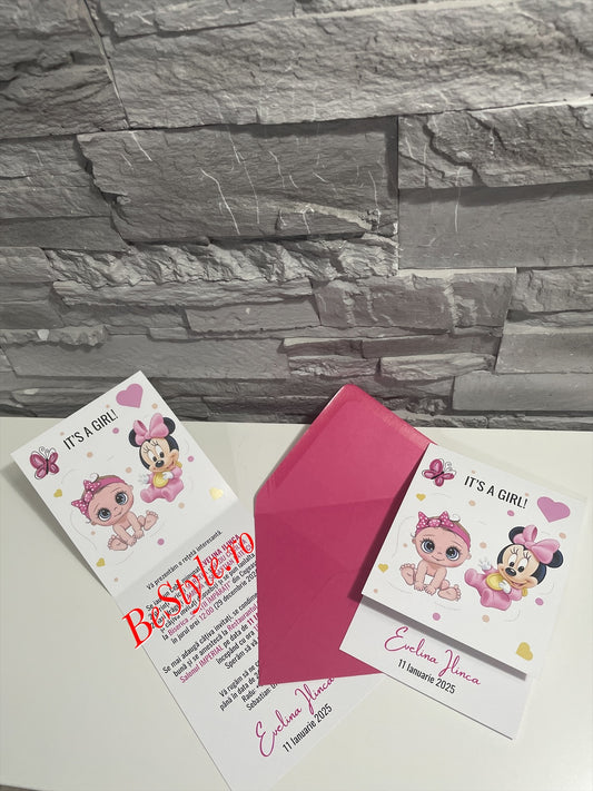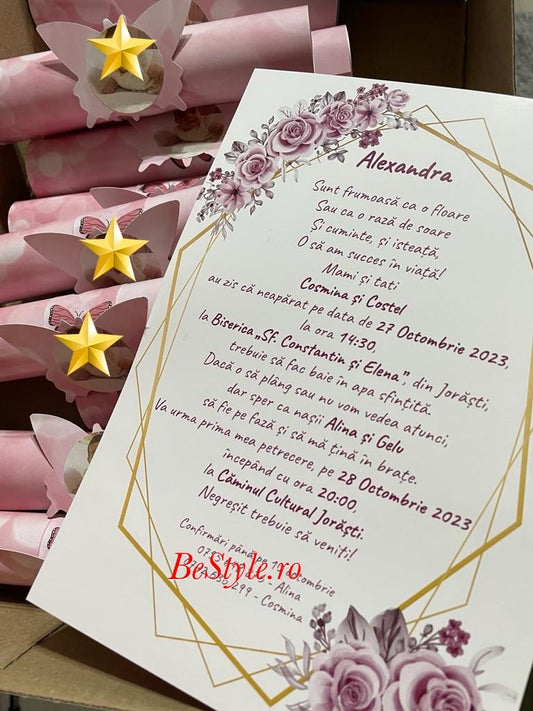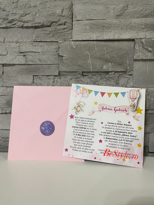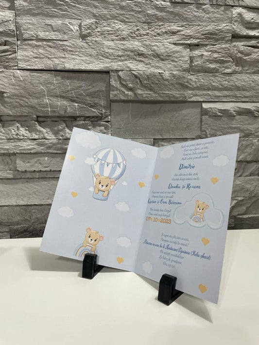 Invitatie botez BSIB029 cu fundita - Marie the cat