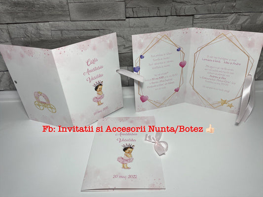 Invitatie botez BSIB023 cu fundita - Princess carriage