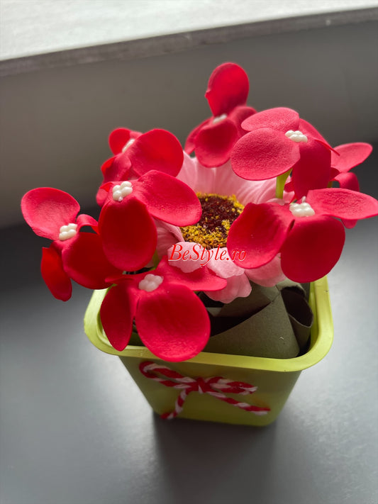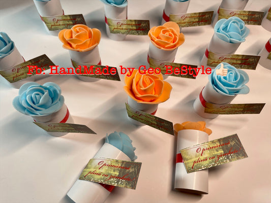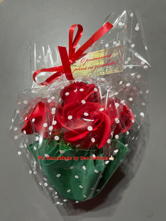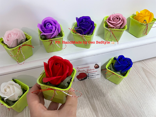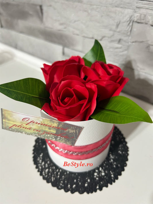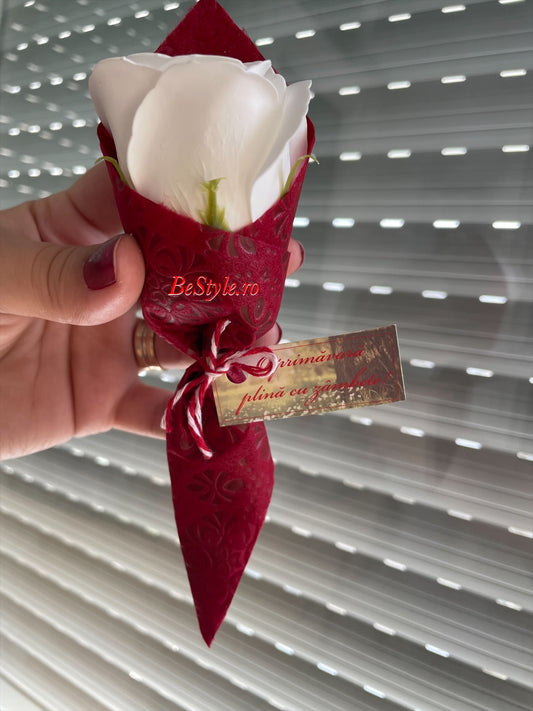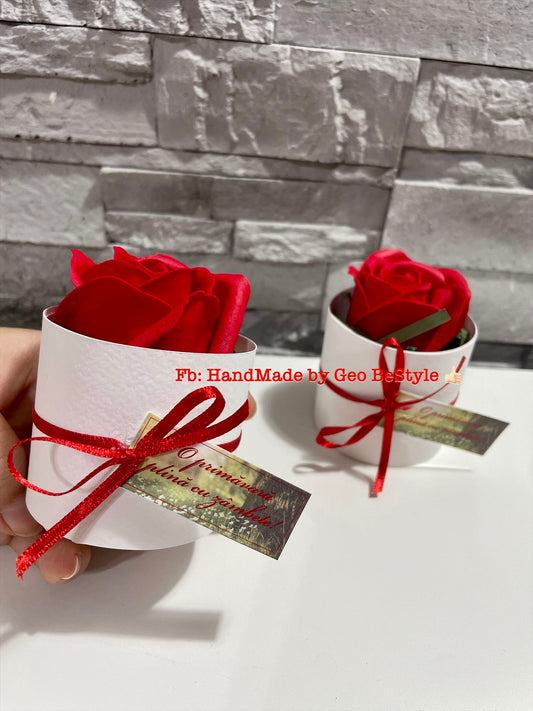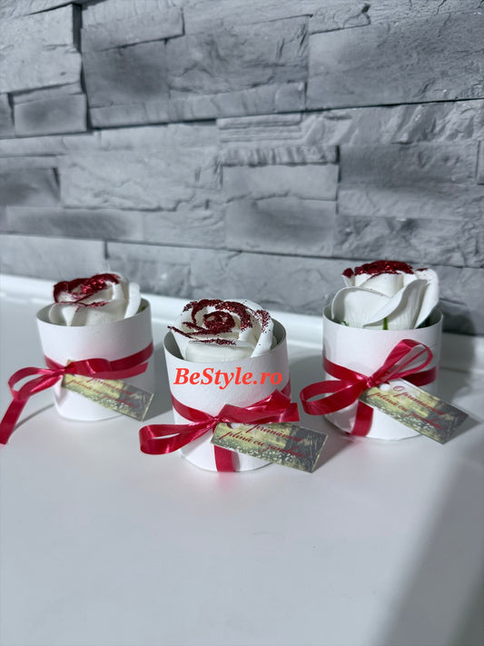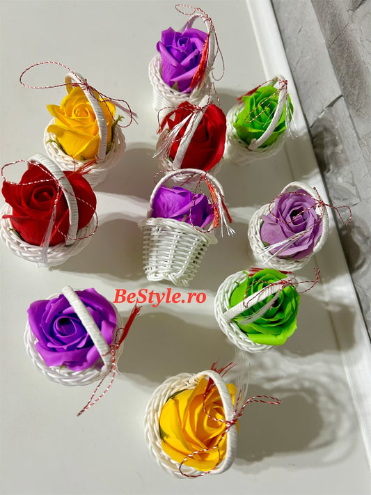 Martisoare cu trandafiri de sapun în cosulet alb 07