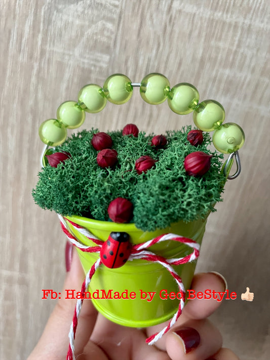 Martisoare - inimioare cu flori uscate magnet de frigider