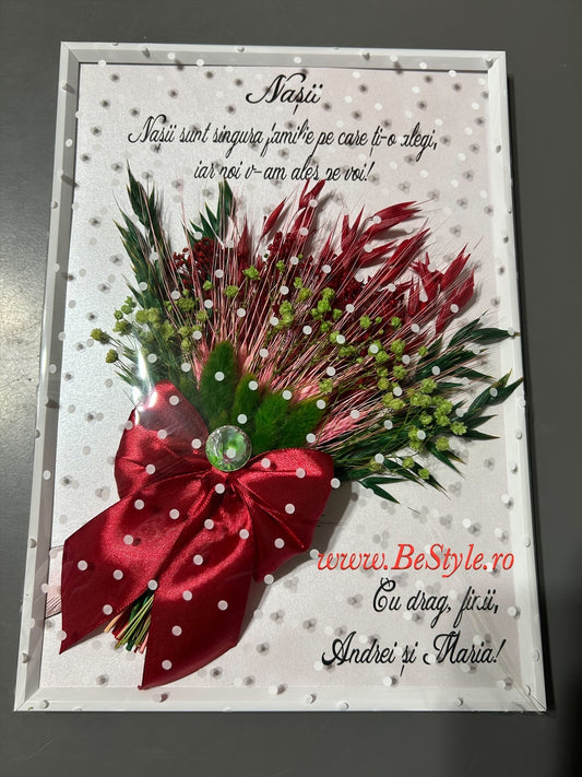 Tablou botez sau nunta pentru nasi - cu flori uscate