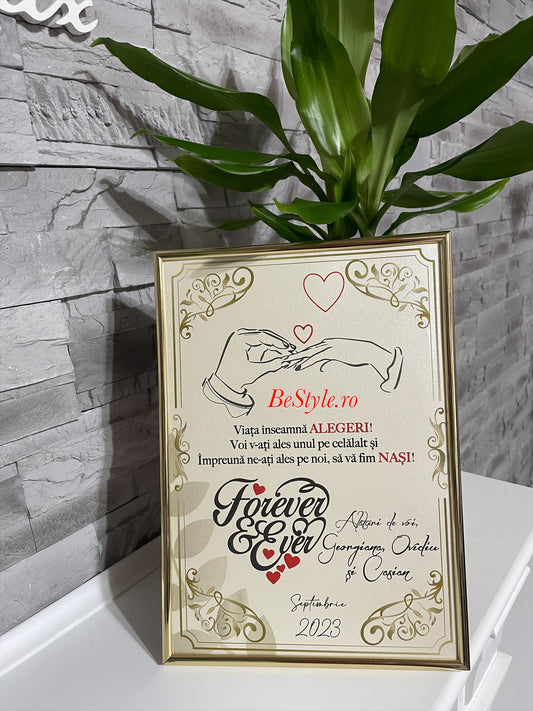 Tablou nunta personalizat cu mesaj de la nasi pentru fini