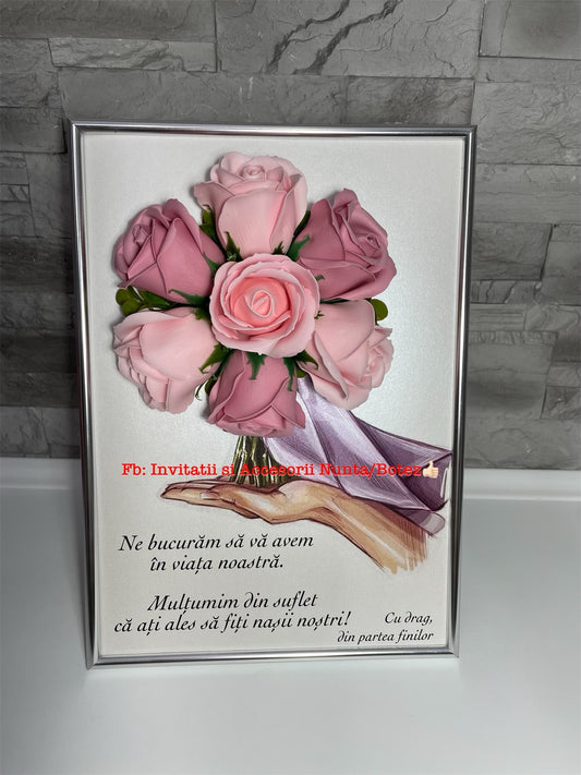 Tablou nunta pentru nasi cu buchet din trandafiri de sapun