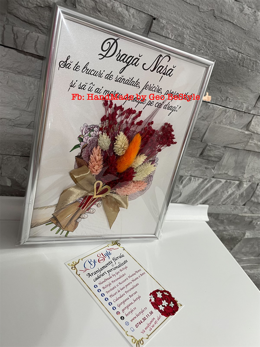 Tablou nunta pentru nasa cu buchet din flori uscate