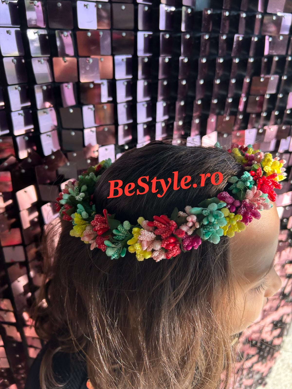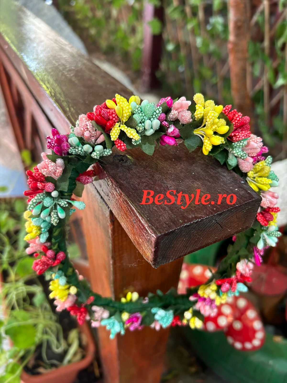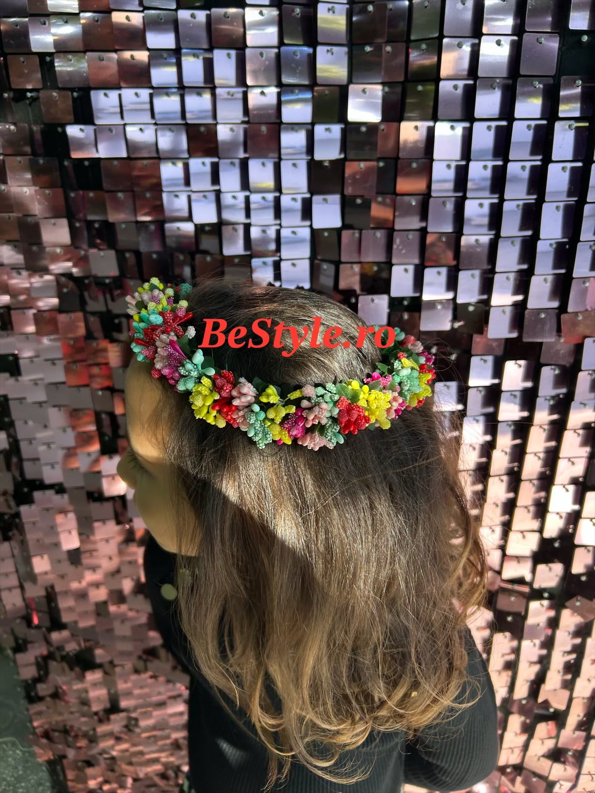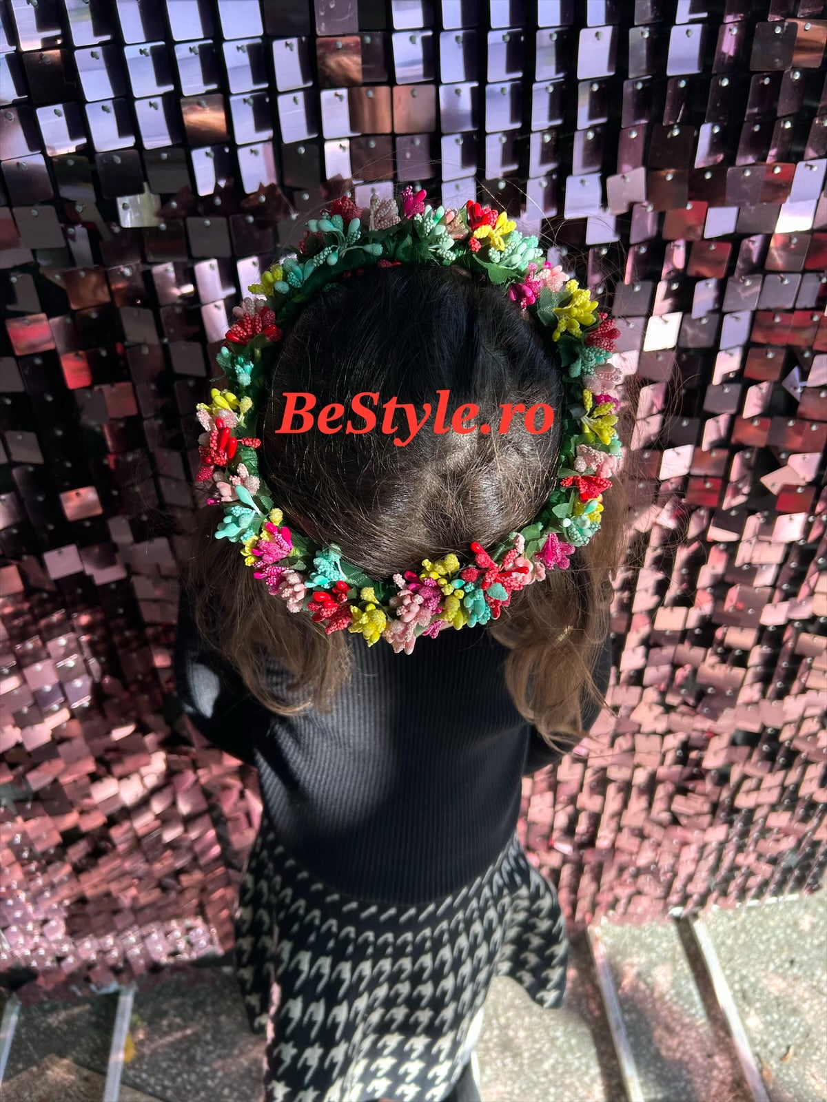 Coronita multicoloră, realizată manual, stamina cu stamina, pentru elevi și nu numai.