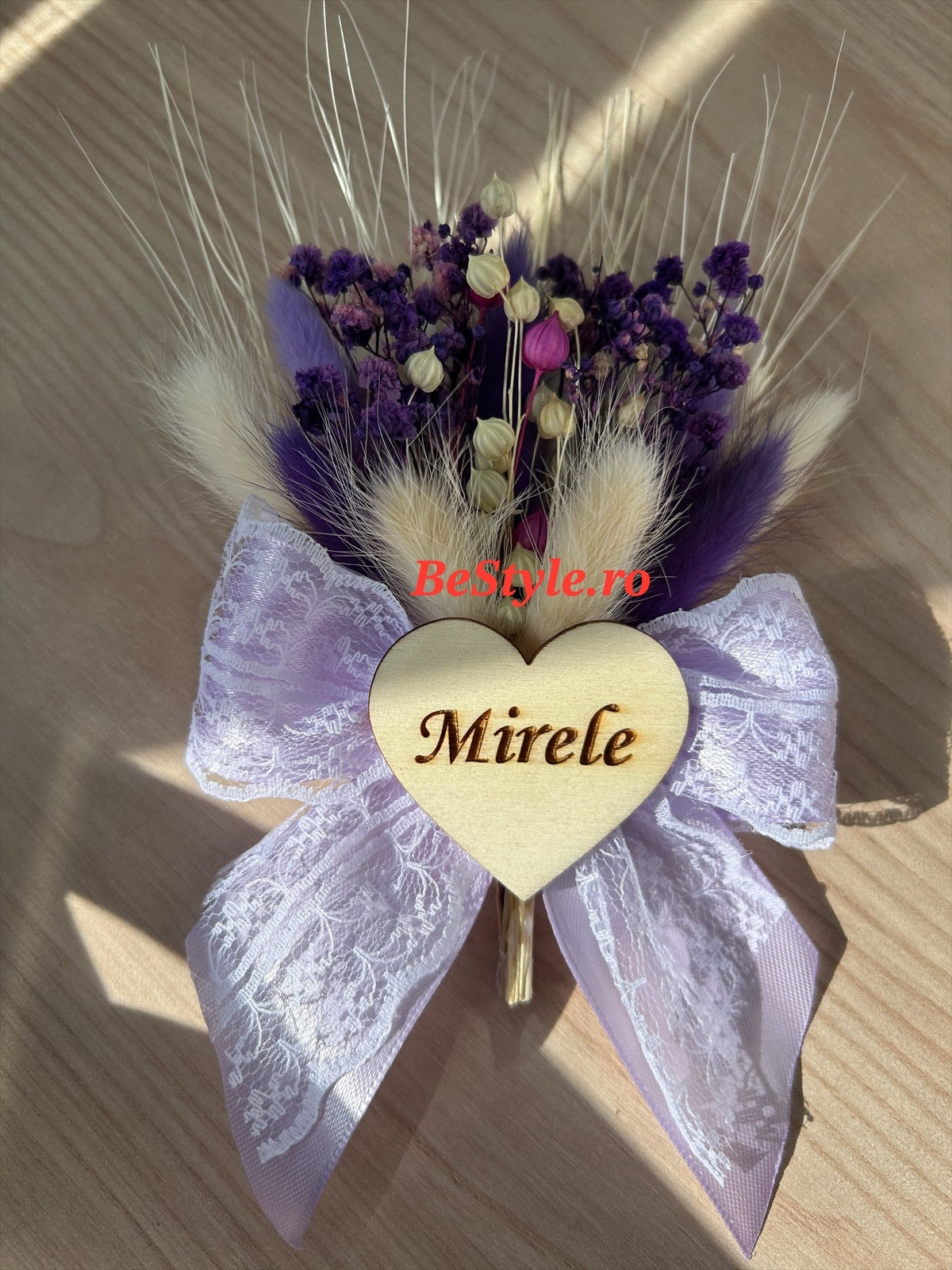 Floare de pus în piept mire, nas, nașa cu flori stabilizate, personalizate pe comanda.