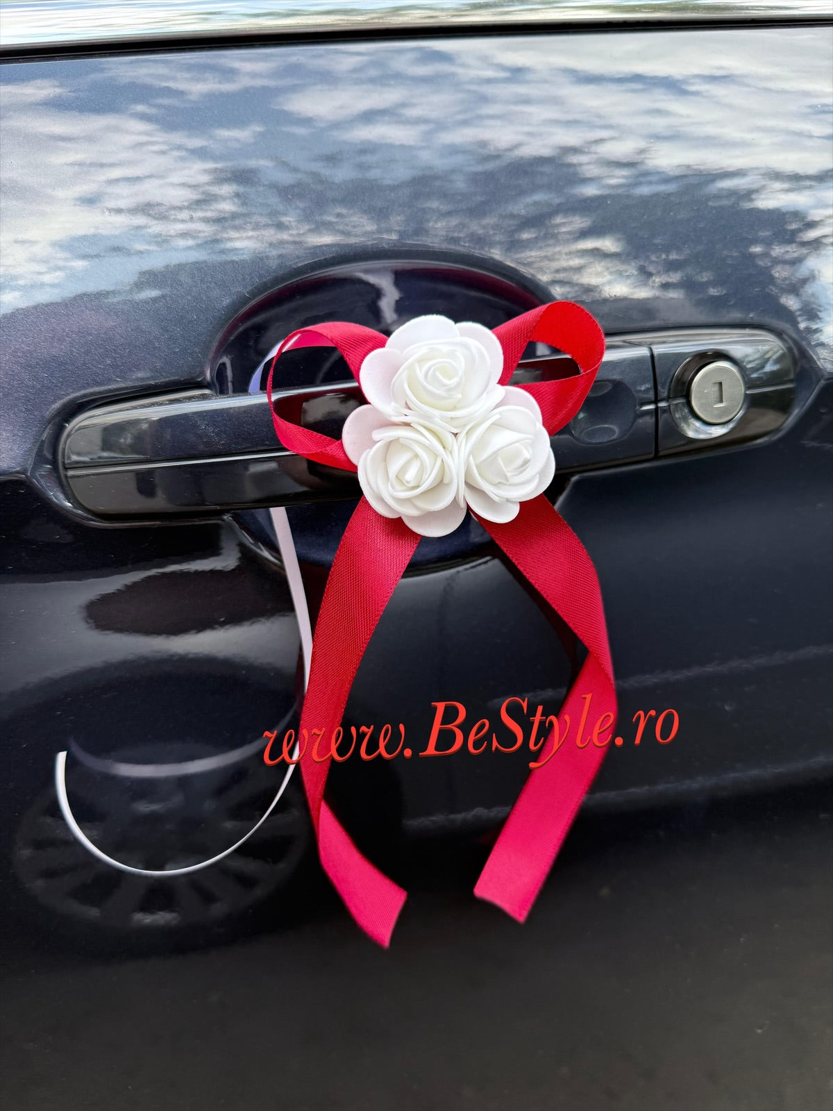 Fundita din satin cu trandafir pentru oglinda masina nunta invitați: roz, fucsia, ciclam, turquoise, roșu, mov, lila.